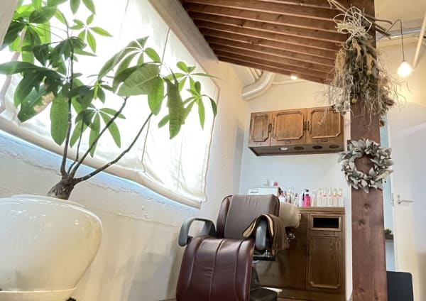高い天井と梁のある空間で落ち着いてゆったりくつろげる理・美容室♪