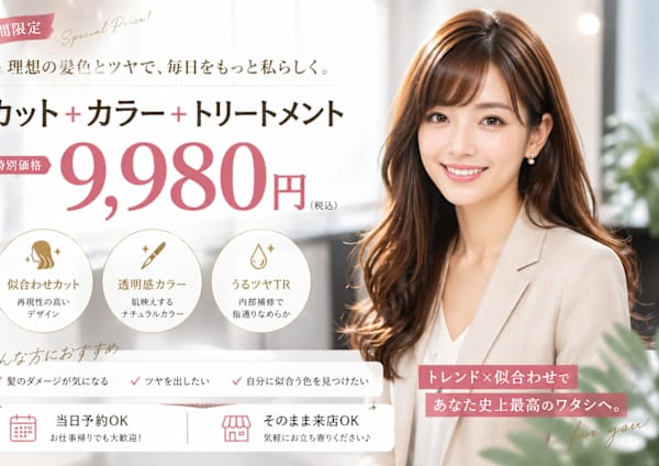 We welcome international students! Haircut only 2000 yen, Cut + Color + Treatment 9980 yen. Easy communication with AI translation.PayPay OK