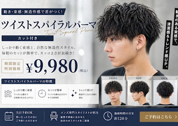 北九州市で人気が高いメンズ縮毛矯正サロン | 駐車場あり