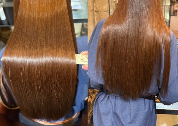 縮毛をしましたが、私の髪の状態を よく見てくださり、くせのある部分のみを施工してくれました。 直毛にはならず、柔らかいストレートで 大変気に入っでます。ありがとうございました。