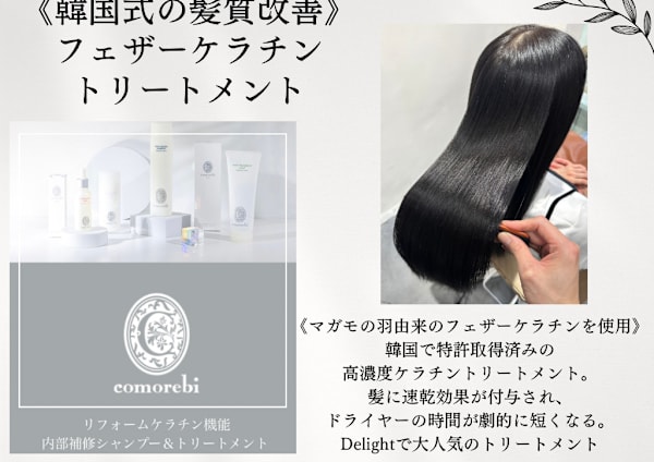【髪質改善・縮毛矯正の専門店で満足いかなかったあなたへ!駆け込みサロン】縮毛矯正を極めたその先の施術《シルクストレート》を体験してください!韓国で特許取得済みの髪質改善《フェザーケラチントリートメント》も大好評!東海3県にとどまらず遠方からも訪れるDelightに縮毛矯正・髪質改善の部門がオープン!