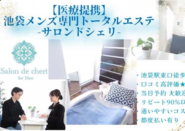 《池袋駅から徒歩5分のアットホームなサロンです◎》《最新機器と経験を積んだベテランスタッフの高い技術と安心さ◎》かねてより男性のお客様も多くご来店頂いており、有難い事にお客様が増えた事により2店舗メンズ専門エステサロンをオープンいたしました♪これからはメンズエステも当たり前の時代へ☆彡