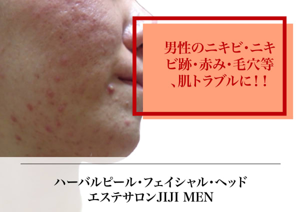 男性のニキビ・跡や毛穴詰まり・開き等 お肌のお悩みに☆ハーブピーリングやプラズマ・毛穴洗浄等で改善◎