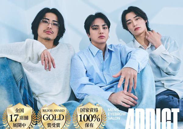 顔の印象は80%が『眉毛』で決まるってご存知ですか?あなたの骨格×ADDICT独自の黄金比=思わず『ドキッとしちゃう』色気MAXのレシピ。最強の垢抜け体験でモテ度UP!!初めてのお客様が7割なので、眉毛サロンデビューはADDICTにお任せください!