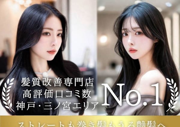 - アクセス:《白髪染め&髪質改善ヘッドスパ専門店》神戸阪急南徒歩2分 各線 三ノ宮駅 徒歩4分、阪急神戸本線、阪神本線 神戸三宮駅 徒歩4分