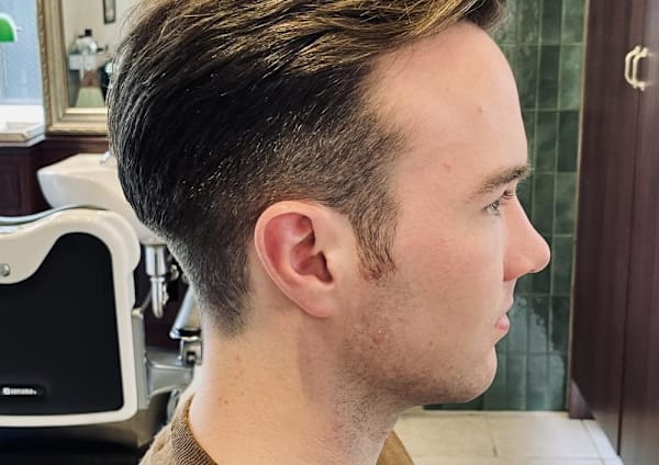 個室2部屋+開放感あるおしゃれな理容空間。フェード、アイロン、シェービング──すべてを任せられる技術と居心地の良さ。個室は施術料金+10%で利用可能。自分だけの時間を、大切にしたいあなたへ。