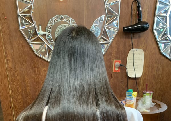 多毛で剛毛、髪の毛のねじれでもっさりとした自毛が夏でもゆれるようなサラサラのストレートになりました。 縮毛+カラーをしたはずが、痛むどころか来たときよりもツヤツヤになっていて施術して2週間ほどたちましたが未だにサラサラ感が衰えることなく持続しています。 ありがとうございました!