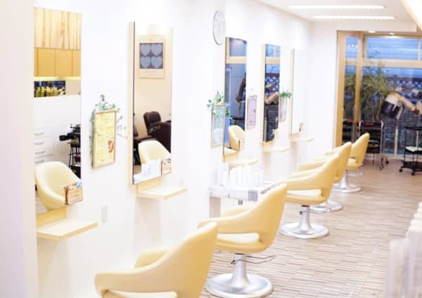 白を基調に黄色をアクセントにした明るい店内☆笑い声の絶えない空間と親しみやすいスタッフが技術と癒しをご提供♪お客様のお悩みやなりたいスタイルに合わせ経験を積んだスタッフが丁寧に施術◎頭皮の疲れを癒す『ヘッドスパ』ふんわり、ハリコシを与える『スカルプケア』のメニューもあります!