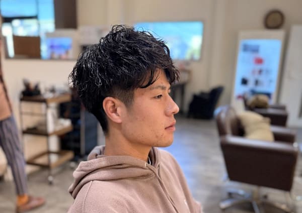 今回は前回行ったパーマを維持するための カットをしてもらった。顔まわりをスッキリ させるために刈り上げ+ツーブロック、 それに加えスタイリング剤をつけた際に動きが出やすいようにカットをした。 また、今回もヘッドスパを行ってもらったが とてもよかった。