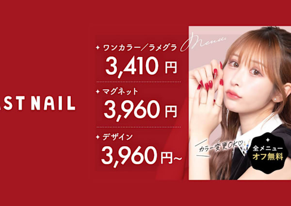 120店舗以上展開★年間70万人に利用されている日本No.1ネイルサロン★パラジェル変更385円/フィルイン変更330円の業界最安級価格♪付替えオフ料金は永久無料!ワンカラーorグラデーション3990円/定額デザイン4990円/持ち込みデザイン5990円と地域最安級★2回目以降もプチプラ◎