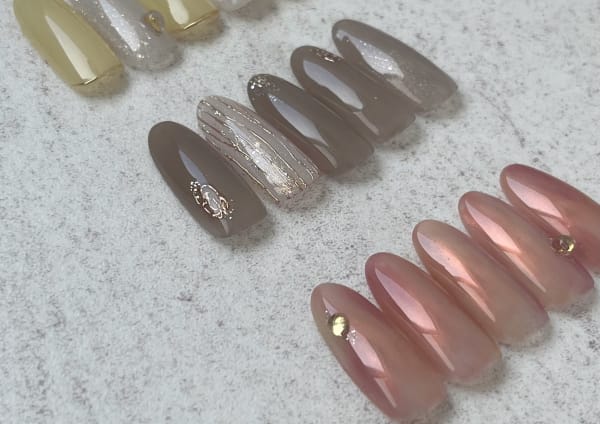 豊富なカラーとデザインをご用意し、持ち込みデザインもOK♪ 自分好みにカスタマイズしたい方や周りと差をつけたい方にもおすすめです。 お客様の希望やライフスタイルに合わせてご提案いたします。シンプルからトレンドまで、プロの技術で長く美しいネイルを楽しめます♪