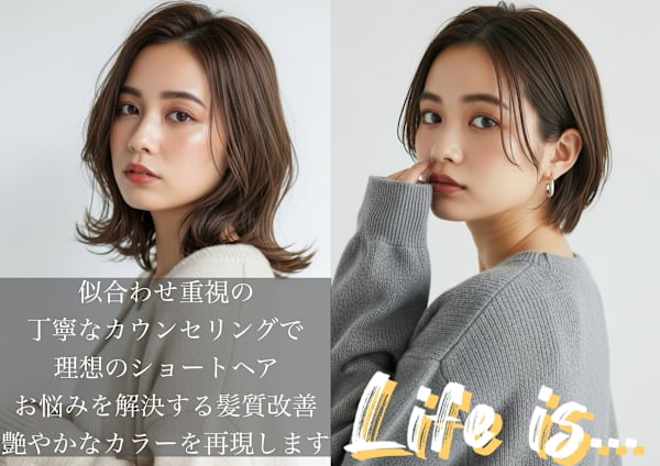 【磐田/口コミ高評価多数】当日予約◎広い世代に大人気!髪質改善やショートヘア、各スペシャリスト在籍