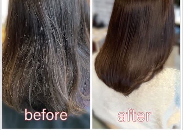 初めての訪問。きっかけは、いつもの美容院の希望する時間が、空いていなかったことと、髪質改善したかったこと。 現状把握・健康な髪になるまでの計画書・ホームケア方法・アロマなど、 詳細な説明があり、結果的に、とても満足度が高い。 4週間ごとの施術とホームケアで、6ヶ月程度で、10段階ぐらいある中の「2」→「5」健康な髪になれるそうなので、実践してみようと思う。 髪の洗い方は、目から鱗だった。。 ずっと間違った洗髪方法で、自分で傷みの原因を作っていたことに気がついた。 可愛い店長さんのお出迎えと、ヘッドスパ時にお膝に乗せてもらって、アロマとともに、とてもリラックスできた。 ありがとうございました。