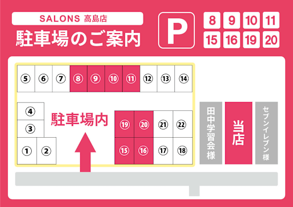 - アクセス:【メンズOK】JR山陽本線 高島駅 徒歩2分、【メンズOK】新幹線高島駅より徒歩2分。セブンイレブンと田中学習会の間にあります。【駐車場】あり