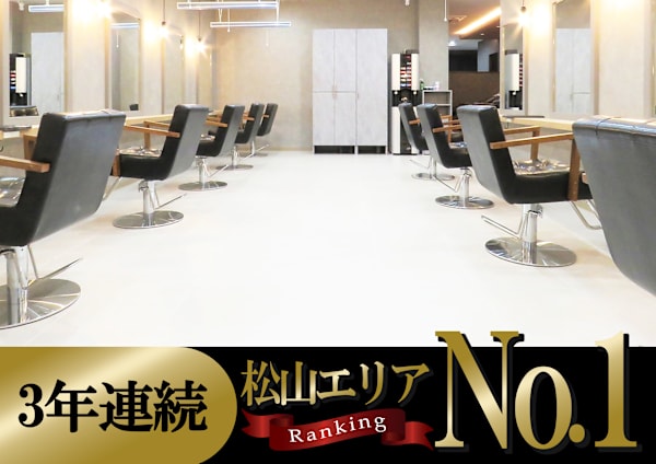 《松山市駅徒歩3分♪♪》スタイリッシュな雰囲気で、モダンな空間が広がるヘアサロン。カラー技術に優れ、透明感ある髪色を叶えることに自信。若々しい感性の女性たちから支持を集めている。キッズスペースも完備し、お子様連れのお客様も安心して利用可能。クレジットカードでのお支払いもOK!