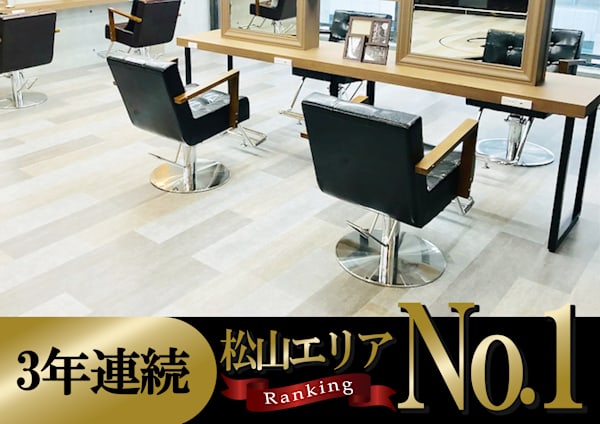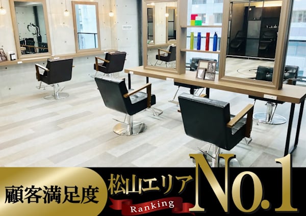 《松山市駅徒歩3分♪♪》スタイリッシュな雰囲気で、モダンな空間が広がるヘアサロン。カラー技術に優れ、透明感ある髪色を叶えることに自信。若々しい感性の女性たちから支持を集めている。キッズスペースも完備し、お子様連れのお客様も安心して利用可能。クレジットカードでのお支払いもOK!