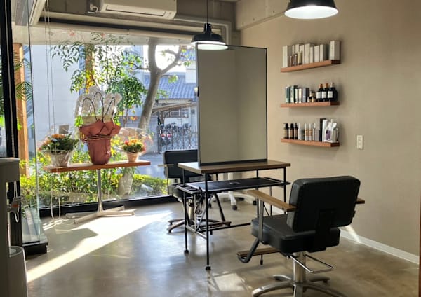カラーが好評のヘアサロン。リラックスできる空間も魅力。