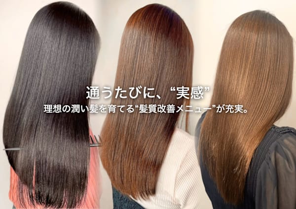 全席個室が魅力の髪質改善専門サロン。 「こういう髪になりたかった」が、ちゃんと叶う場所。 髪質改善縮毛矯正・髪質改善カラーに特化し、触れた瞬間「私の髪じゃないみたい」と感じる仕上がりへ。全席個室型サロンだから、周りを気にせず、あなただけの髪質再生プログラムをご提案します。