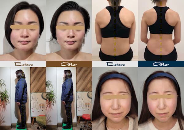 全身の歪みを整え、たるみ・むくみ・肩こり・姿勢まで一気に改善!頭蓋骨・脊柱・骨盤・肋骨・肩関節をトータルで調整し、内側から整えることでフェイス・ウエストラインがキュッと引き締まり、全身スッキリ◎一度の施術で驚くほどの変化を実感!小顔×美姿勢×代謝アップを叶える、当サロンの本格美容矯正。